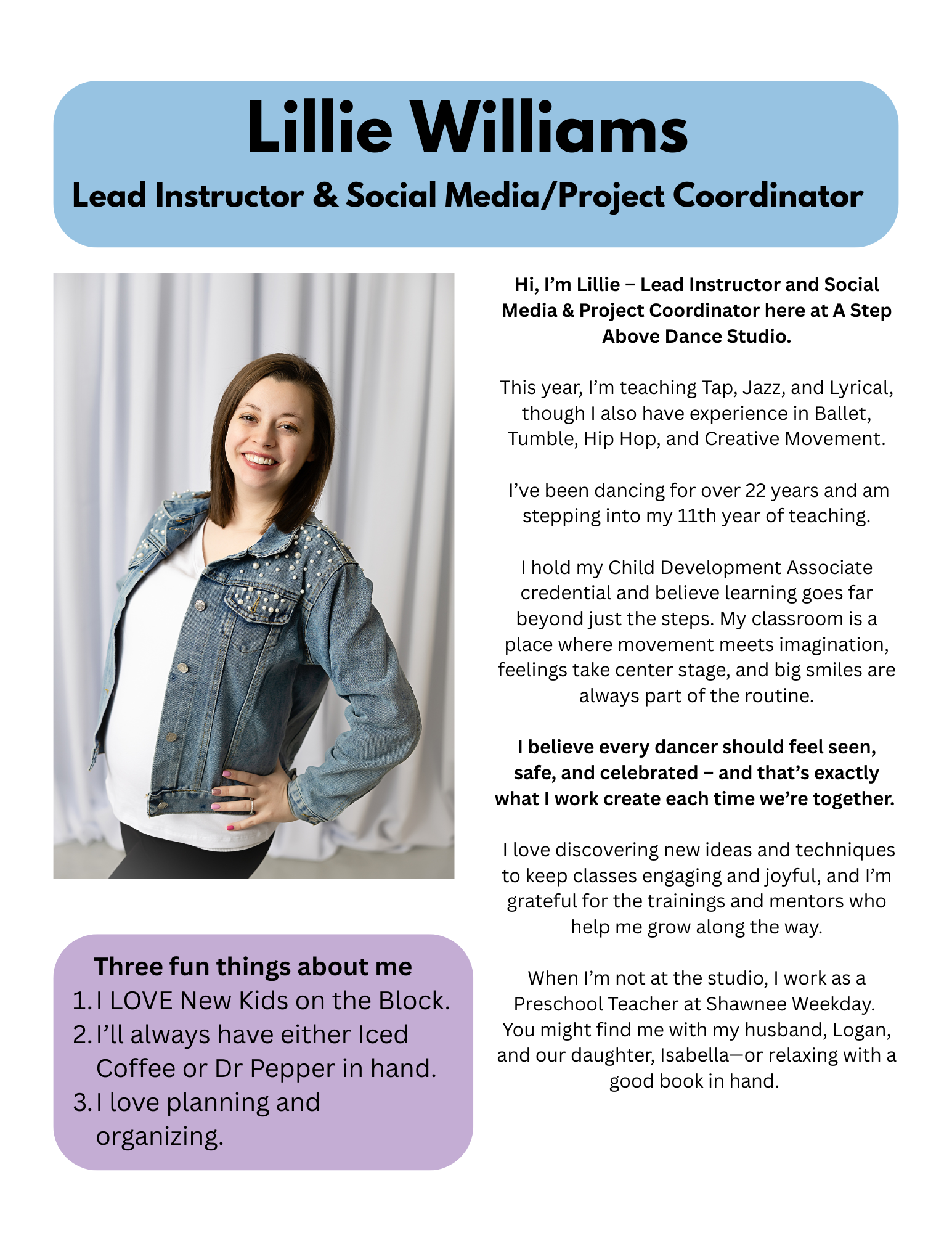 Lillie Williams, Lead Instructor & Social Media/Project Coordinator