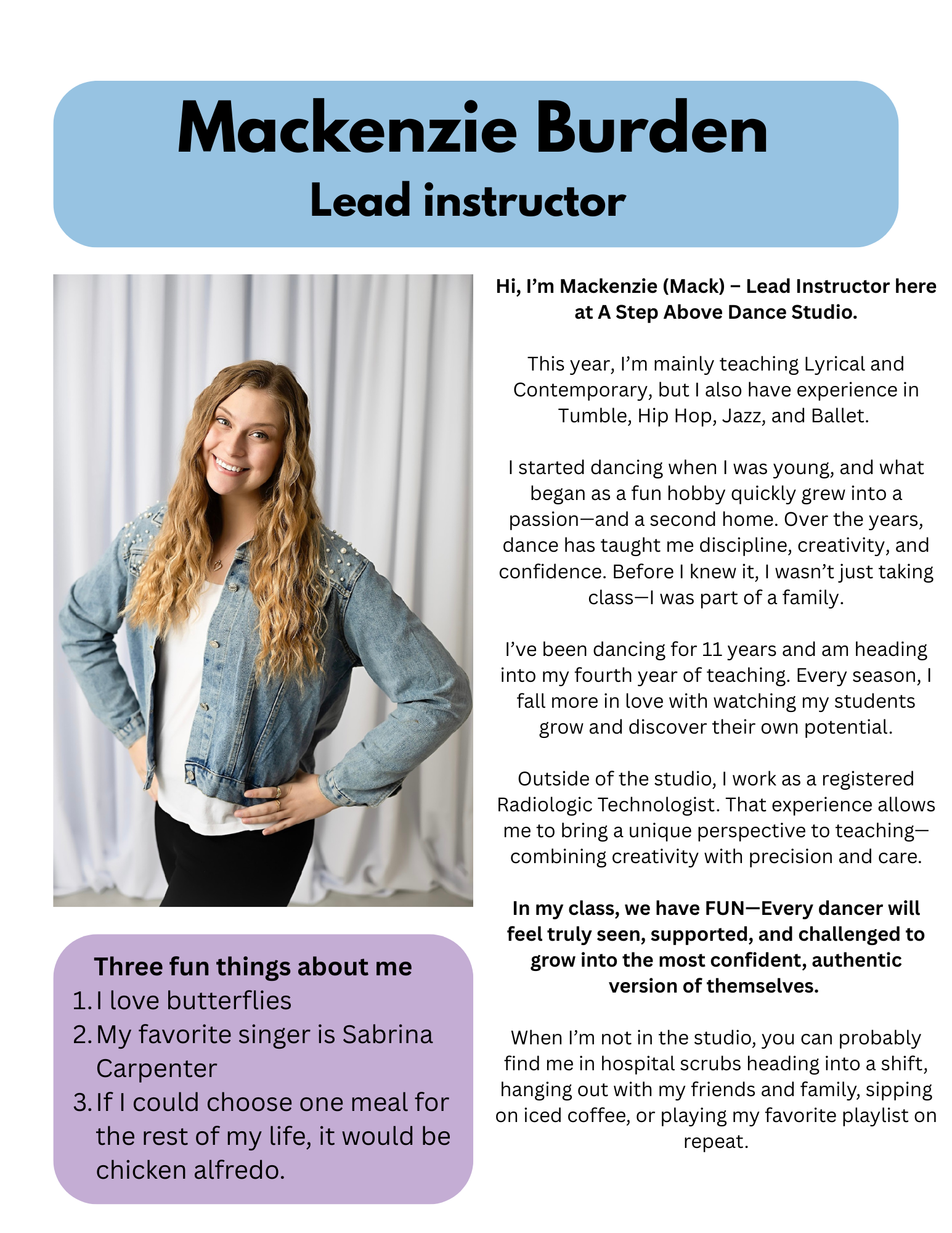 Mackenize Burden, Lead Instructor