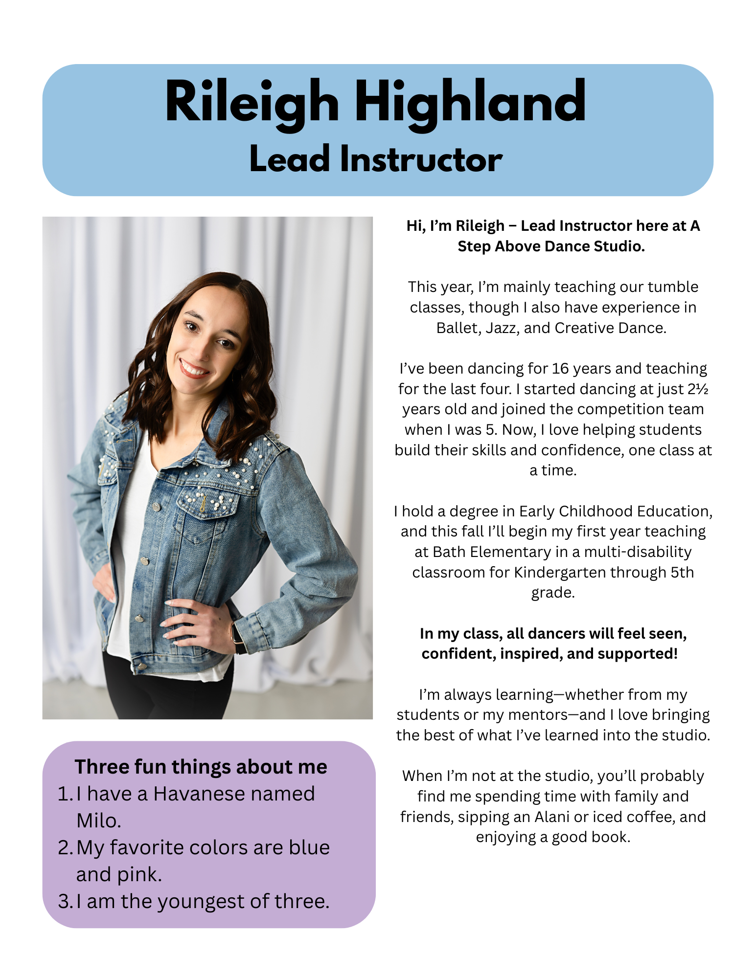 Rileigh Highland, Lead Instructor